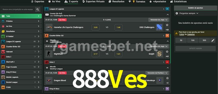 A 888Ves oferece uma seleção abrangente de opções de apostas em e-sports. Com uma ampla variedade de jogos para escolher, incluindo League of Legends, Dota 2 e CS:GO, há algo para todos os fãs de esportes eletrônicos. Além das apostas pré-jogo, a 888Ves também oferece opções de apostas ao vivo para muitos de seus eventos de e-sports. Portanto, seja você um novato em apostas em e-sports ou um profissional experiente, a 888Ves bet tem tudo o que você precisa para começar.